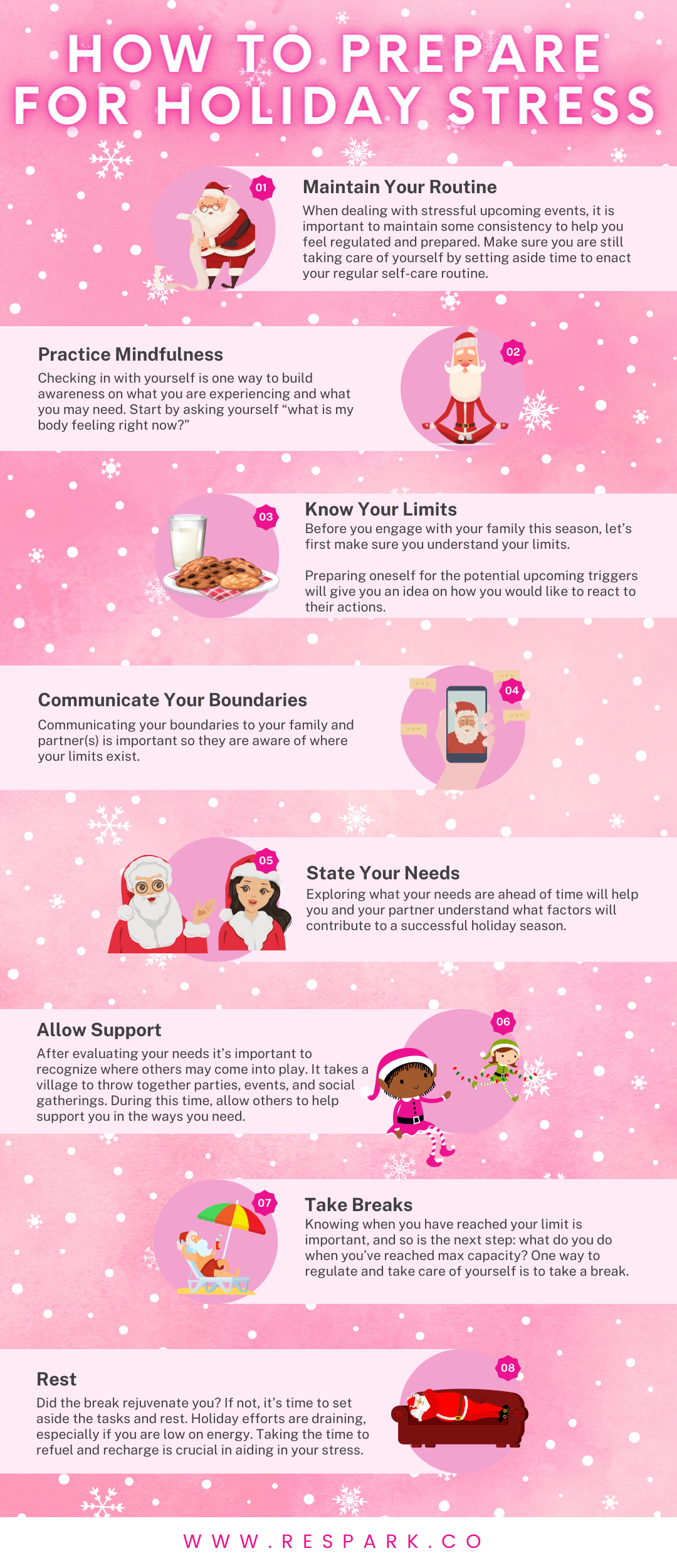 These helpful tools are just some of the ways you can maintain the strength to persevere through the holidays. Seeking support from a therapist or counselor is recommended if stress or relational issues become overwhelming. At Respark, we will support you through this holiday season with our professional guidance. Book your appointment today!