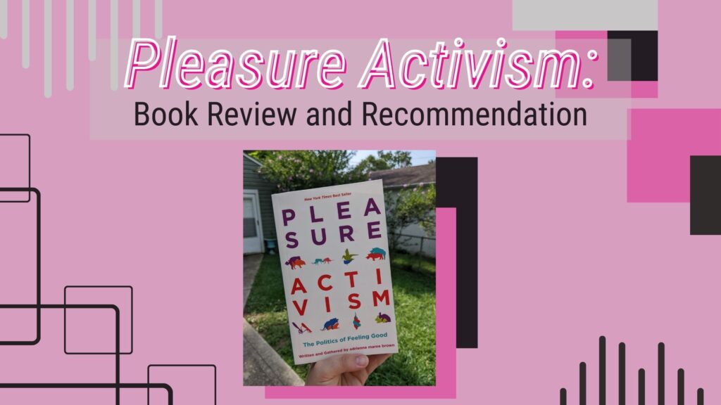 adrienne maree brown’s 2019 book Pleasure Activism: The Politics of Feeling Good surrounds the radical notion that experiencing pleasure under the current power regimes is inherently a revolutionary act. This is a fascinating concept to me because it builds joy into the activism landscape, meaning that to create sustainable change for all, we need to allow space for feelings traditionally connotated as selfish. I tend to think about this in terms of avoiding burnout when fighting for justice. I think all of us are familiar with the feelings of anxiety, overwhelm, and sadness that builds following repeated offenses reported by the news. But amb takes this even further to pose that simply existing joyously and with surroundings that feel sensual is radical. Consider, momentarily, the feelings power structures such as capitalism, patriarchy, and systemic racism want you to experience on a day-to-day. Is it happiness and sexual power? Likely not. This is because feelings of pleasure likely remind us of our human-ness, which is antithetical to our production capability. On the other hand, feeling stressed, trapped, and oppressed keeps us complacent with these systems, and always working for the weekends, for example. The capitalist-patriarchal-racist system will simply then re-sell your happiness back to you in the form of merchandise or lavish vacations. amb seems to think that we can reclaim this re-sale, though, by refusing to use them as coping mechanisms and instead use them as daily practices in spite of institutional injustices.
