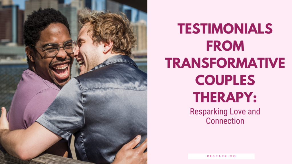 Client testimonials are powerful affirmations of the impact that Respark Therapy’s Transformative Couples Therapy can have on relationships. The success stories of individuals and couples who have journeyed through Respark’s therapeutic process highlight the transformative effects on emotional connection, communication, and overall relationship well-being. Respark Couples Therapy Testimonial 1: Rekindling Passion and Rediscovering Love …
